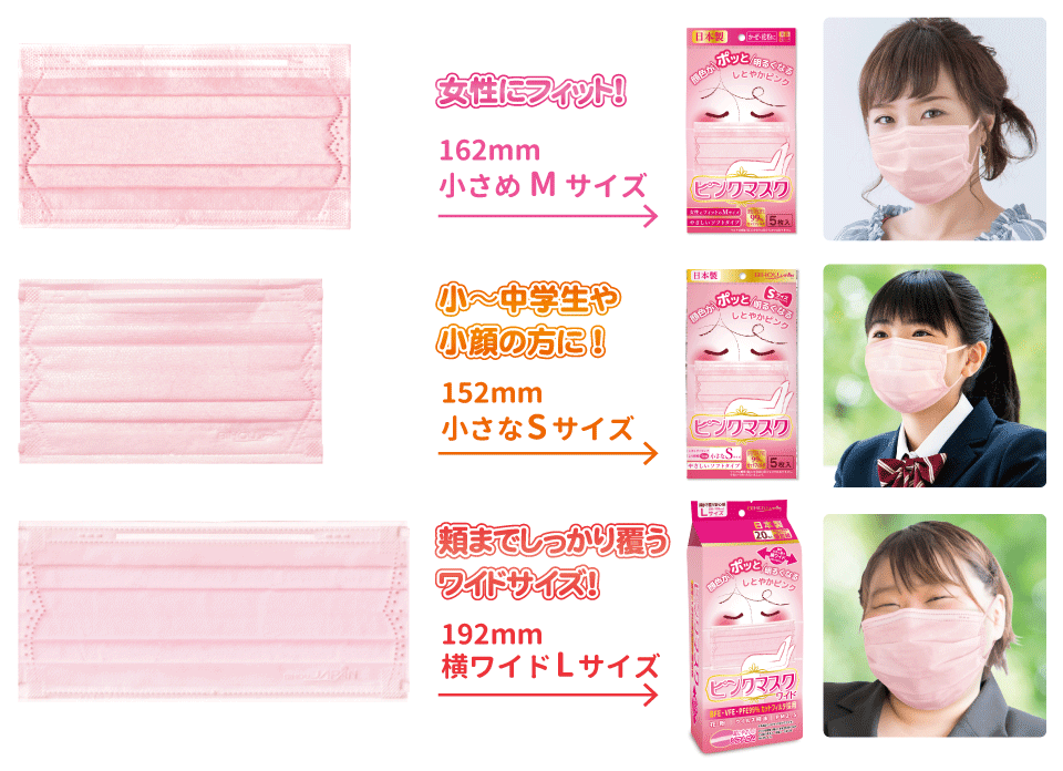 やわらかいふわふわ太ゴム 長時間の装着にも快適な、耳に優しいソフトゴムを使用しております。 耳ゴムまでかわいいピンク色。